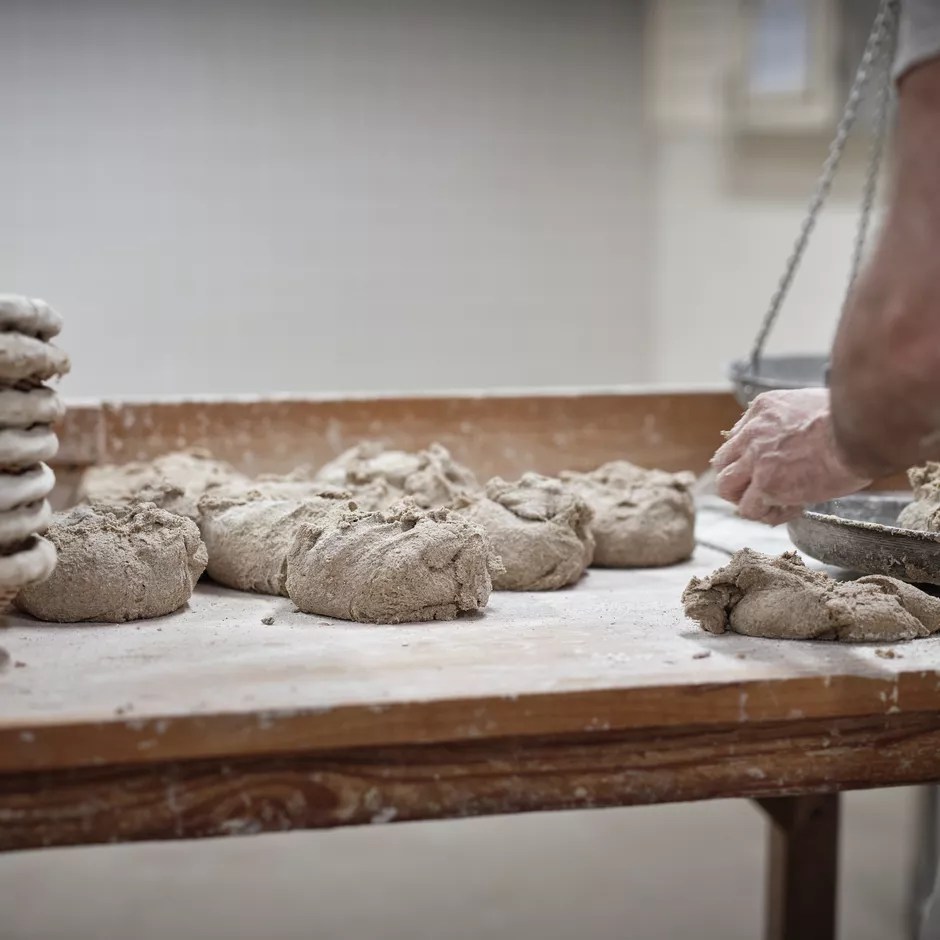 All Poilâne® baked goods are baked in an oven heated by a wood fire. The refractory bricks that make up the oven allow for gentle cooking and a better development of the product’s aromas. The wood used is reclaimed wood, untreated and very dry hardwood scraps, which are byproducts of the paper or furniture industry. Thus, our wood fired ovens are not harmful to the environment.